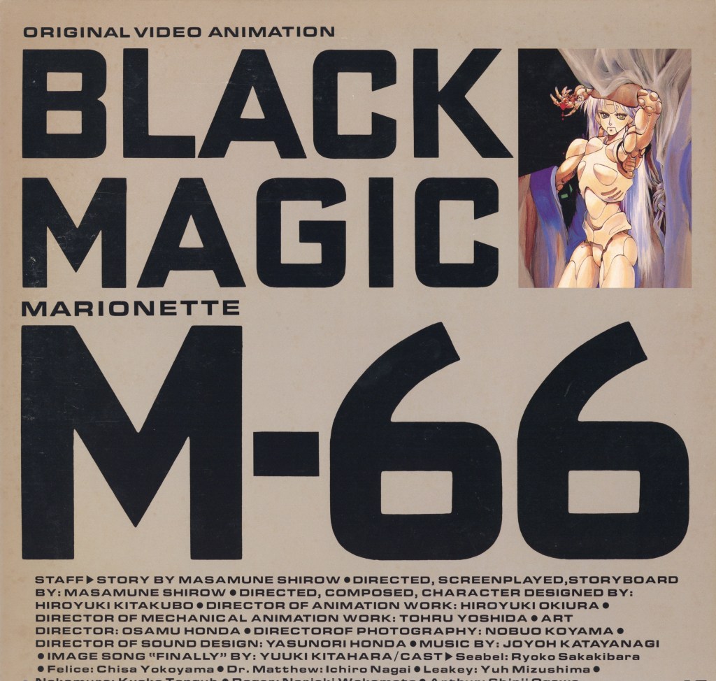 This OVA is based on the 4th episode, “Booby Trap”, of “Black Magic”, a work by SF manga artist Masamune Shirow during his doujin activities. It was released by Bandai Visual on June 28, 1987. It was directed by Masamune Shirow himself, and he wrote the script and storyboard himself. The M-66 android is a military weapon for infiltration and assassination. It is as small as a small man or woman and can move at a terrifying speed. The fingers on both hands are equipped with ejection weapons called wire claws, and one of its two eyes has a camera and the other has a laser cutter. The scariest thing about it is its incredible durability. When it was dropped from the top of a skyscraper and stopped working, it was not destroyed; it just temporarily stopped working due to overheating.