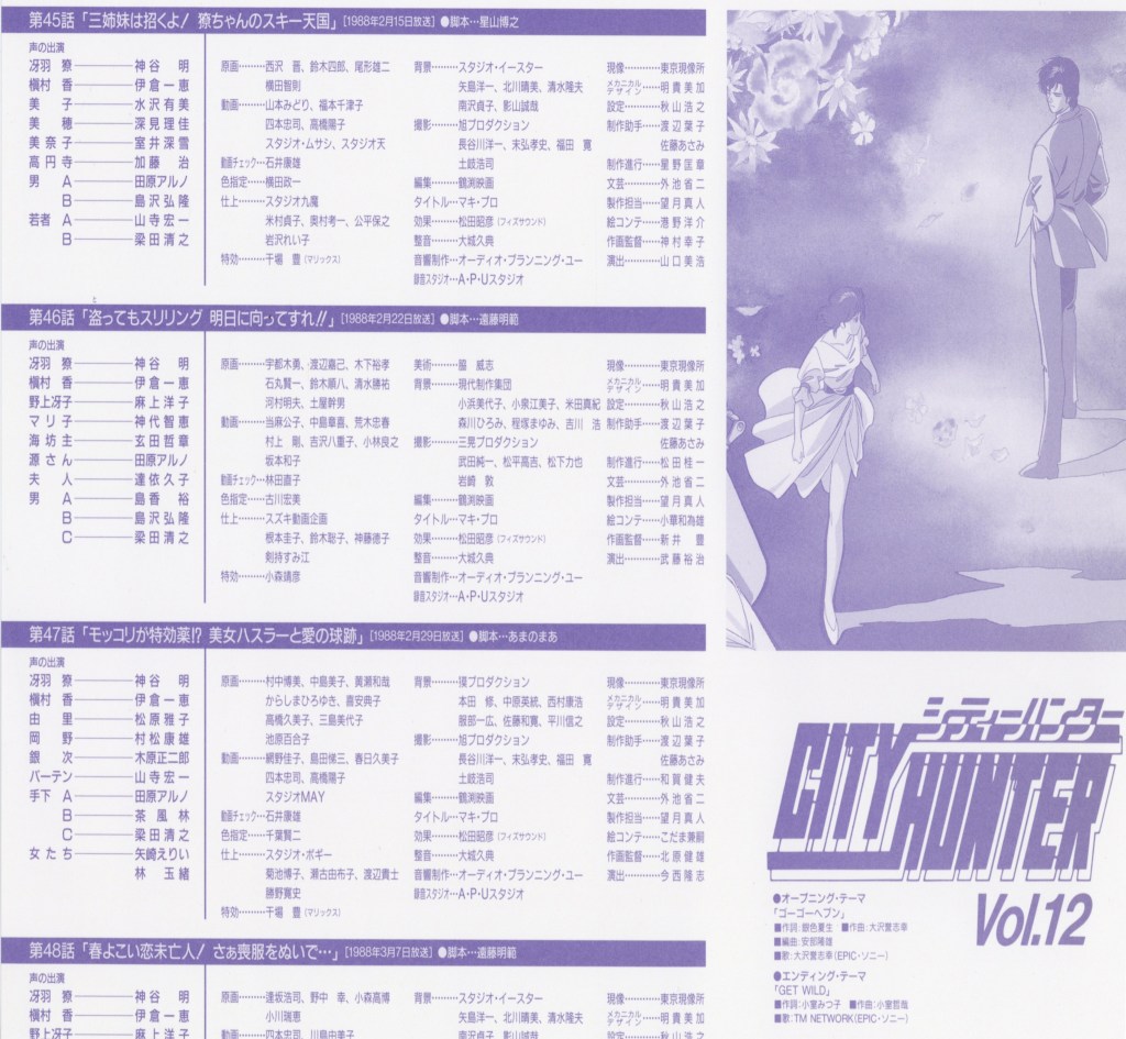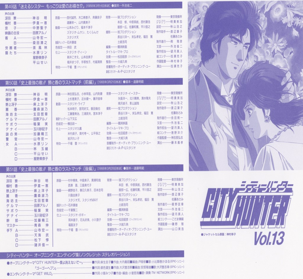 The early City Hunter TV series established its signature tone with stylish animation, memorable characters, and a distinctive mix of gritty urban storytelling and comedic charm. It remains a beloved entry in anime history, influencing many action-comedy series that followed.