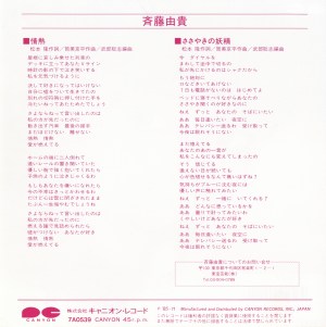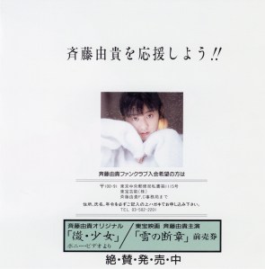 Jounetsu (情熱) is the fourth single album by Yuki Saito (斉藤由貴), released on November 15, 1985. It sings about the feelings of a girl who sees off her lover who is leaving for another region to go to college at a train station.