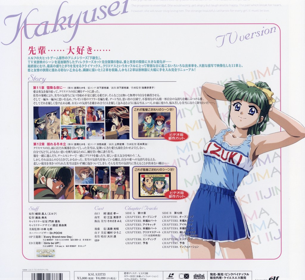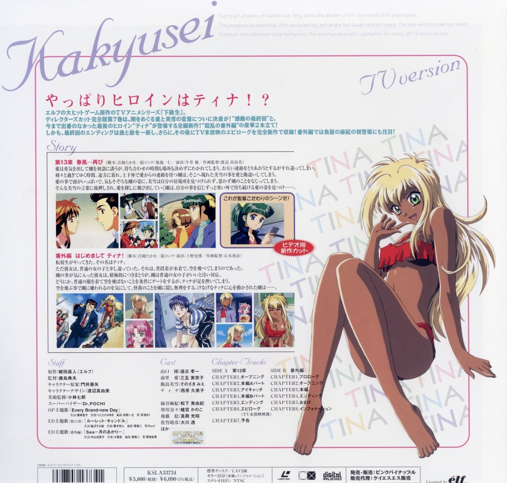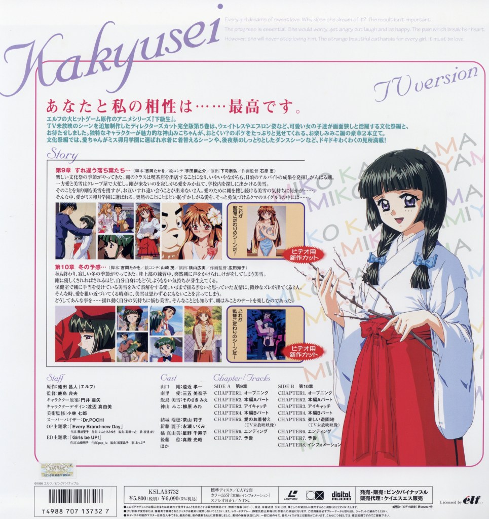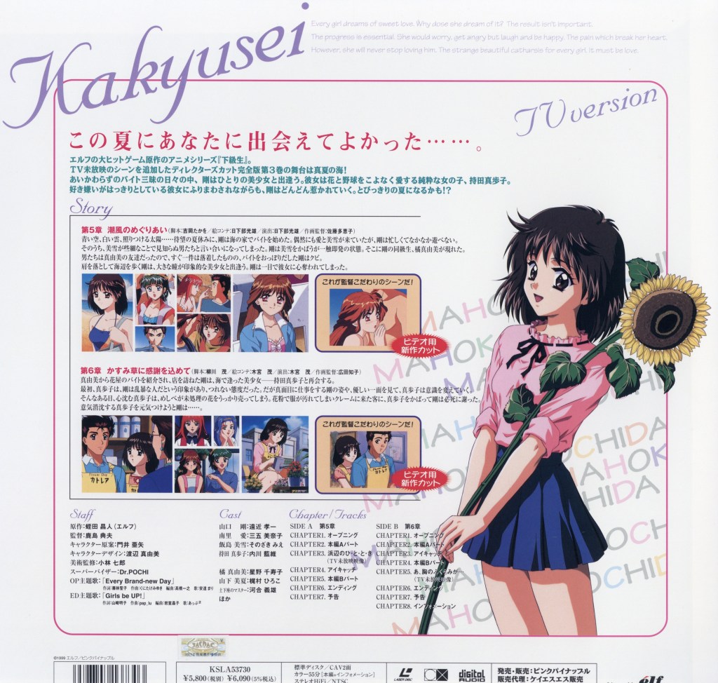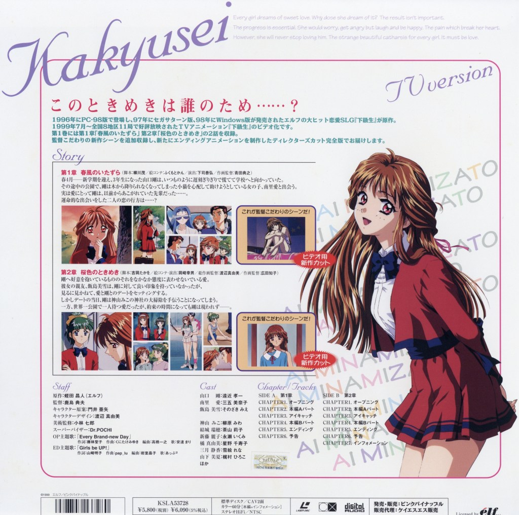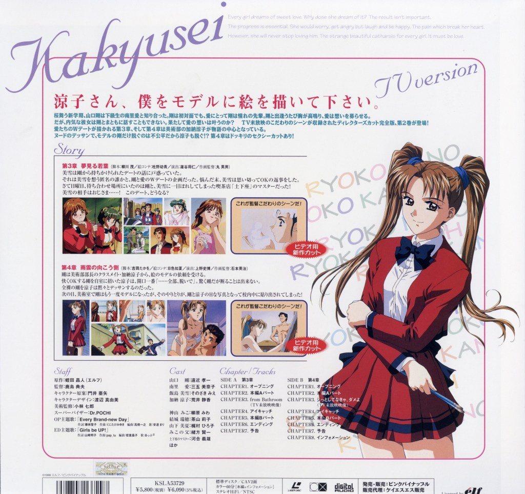Blending slice-of-life storytelling with mature themes, Kakyusei explores the complexities of youth, attraction, and personal growth. Its multiple storylines and relaxed pacing reflect the core mechanics of early visual novels, making it a representative example of how dating simulation games were adapted into anime during that era.