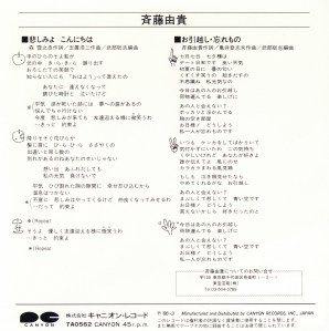 Kanashimi yo Konnichiwa (悲しみよこんにちは) is the fifth single album by Yuki Saito (斉藤由貴), released on March 21, 1986.