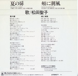 Seiko Matsuda’s Natsu no Tobira (夏の扉) was released on January 21, 1981 as her fifth single and a summer-themed song. This song has become her representative summer song, and is characterized by its cheerful and refreshing atmosphere.