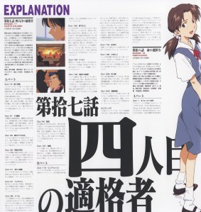 An animation that aired in Japan from October 1995 to March 1996 with a total of 26 episodes. Although the genre is giant robots, it achieved unprecedented commercial and critical success at the time of its broadcast due to its unconventional directing and content, and became a representative work of director Hideaki Anno and Japanese animation of the 1990s. It is evaluated to have caused the third animation boom in the history of Japanese animation, following Space Battleship Yamato and Mobile Suit Gundam.
