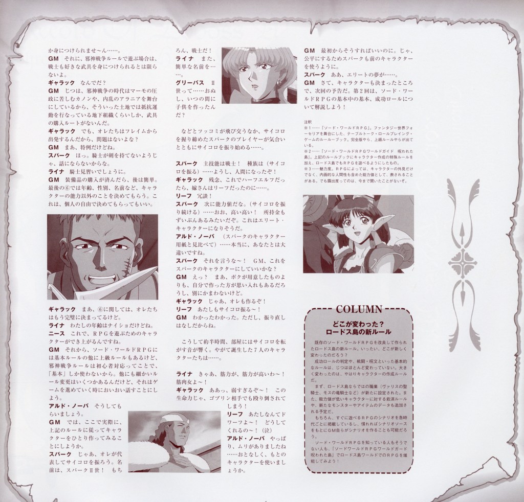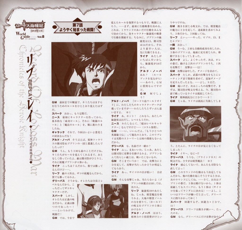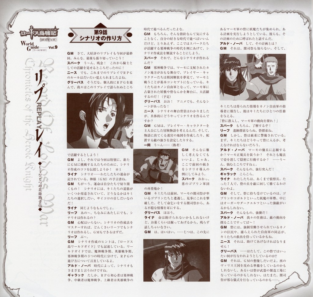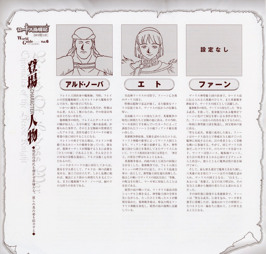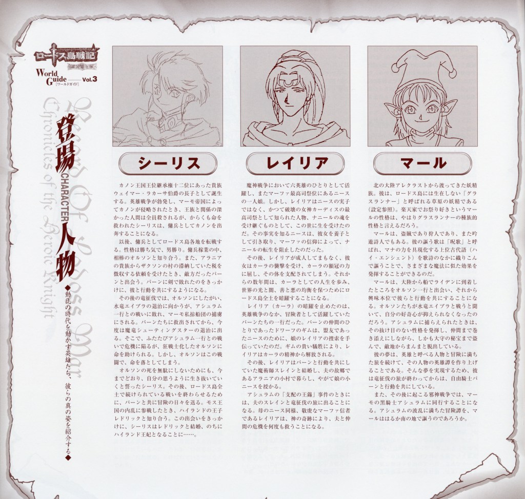 At the center is Spark, a young and determined knight who aspires to live up to the legacy of the legendary hero Parn. Alongside a diverse group of companions—including warriors, mages, and elves—Spark embarks on a perilous journey to protect the realm from dark forces seeking to plunge Lodoss back into chaos.