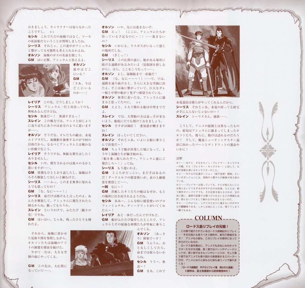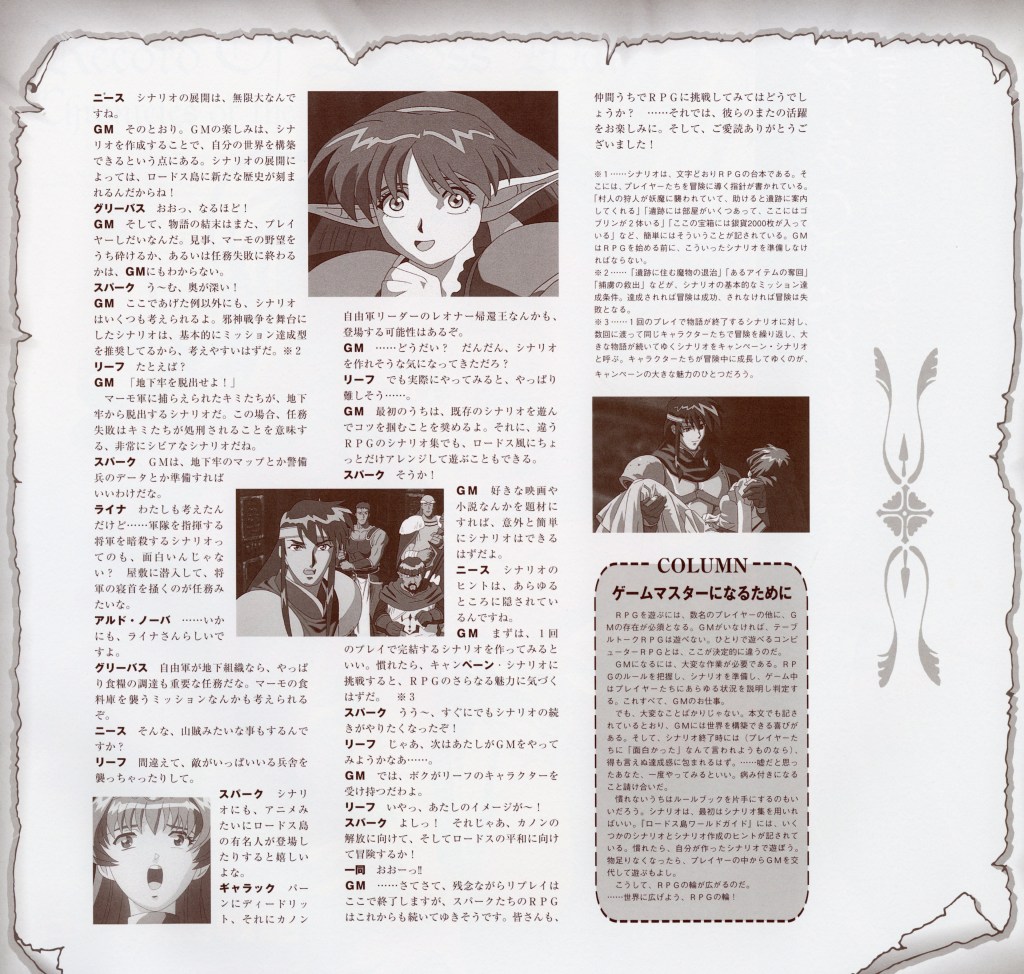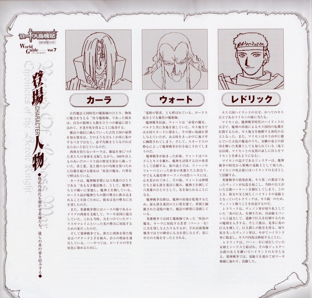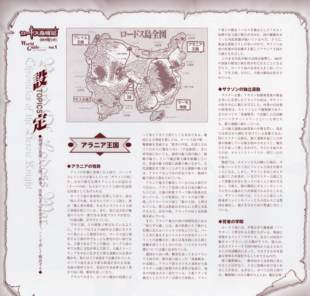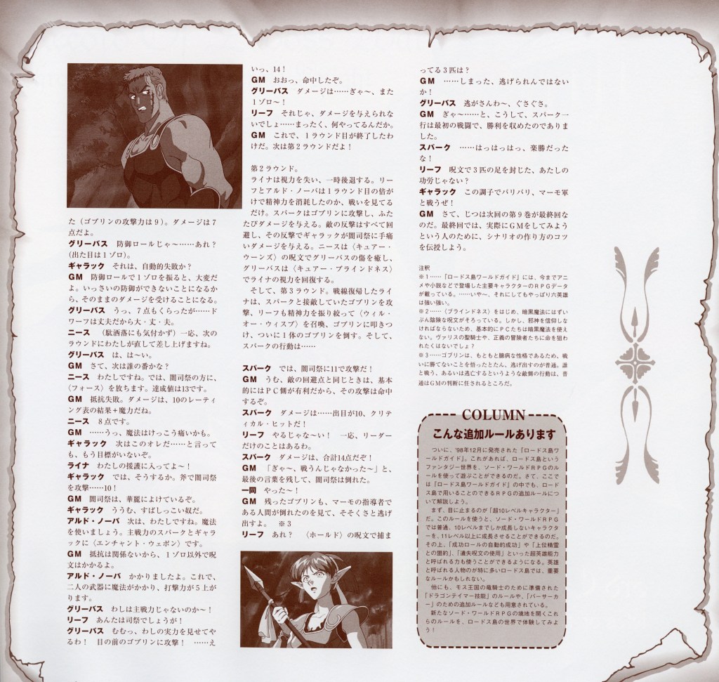 At the center is Spark, a young and determined knight who aspires to live up to the legacy of the legendary hero Parn. Alongside a diverse group of companions—including warriors, mages, and elves—Spark embarks on a perilous journey to protect the realm from dark forces seeking to plunge Lodoss back into chaos.