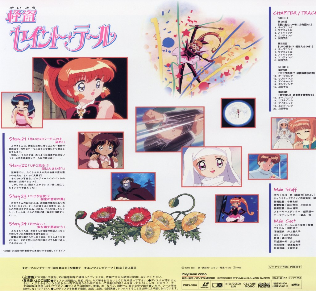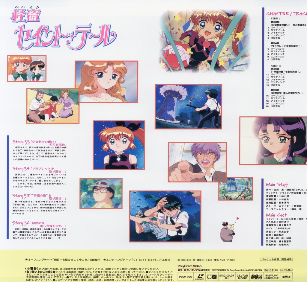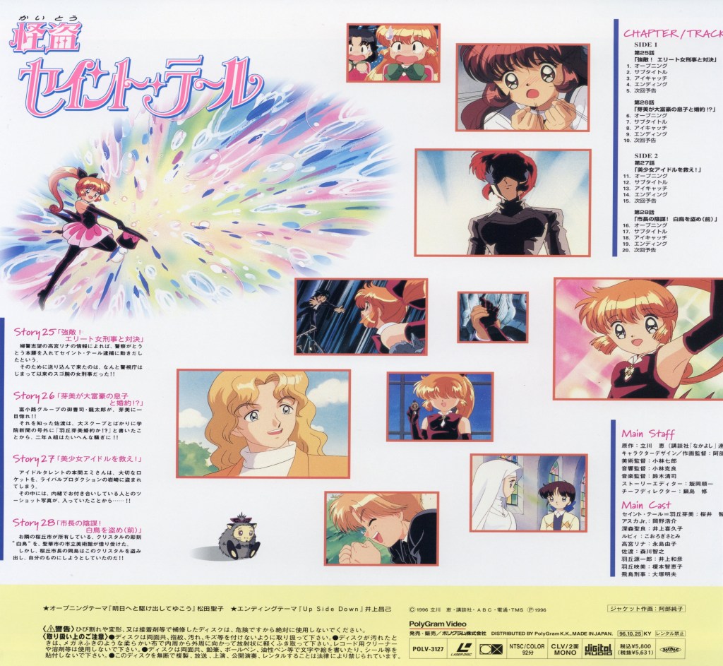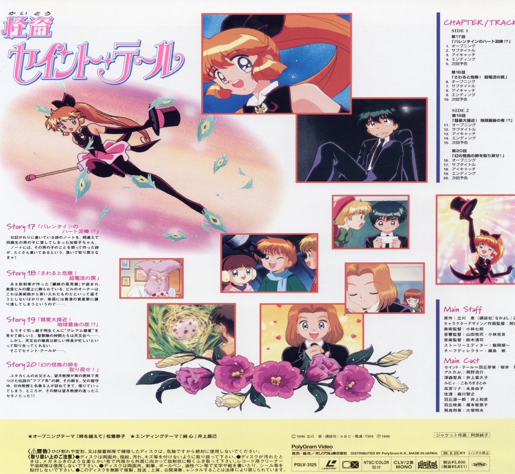 This is a TV anime series based on the manga Saint Tail(怪盗セイント・テール). It aired on Asahi Broadcasting Corporation TV every Thursday from October 12, 1995, to September 12, 1996, once a week, for a total of 43 episodes.