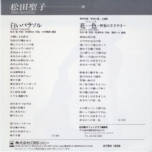 Shiroi Parasol (白いパラソル) is a single album released on July 21, 1981, and is Seiko Matsuda(松田聖子)’s sixth single.