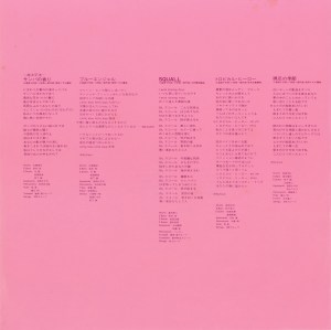 Squall is the first studio album by Seiko Matsuda, released on August 1, 1980. Through this album, Seiko Matsuda established herself as a representative female idol in Japan with her innocent image and refreshing voice. The album’s musical style is characteristic of early 1980s Japanese pop music, and includes bright, upbeat melodies as well as emotional ballads. The main tracks are track 8, Aoi Sangoshou (青い珊瑚礁), and track 5, Hadashi No Kisetsu (裸足の季節).