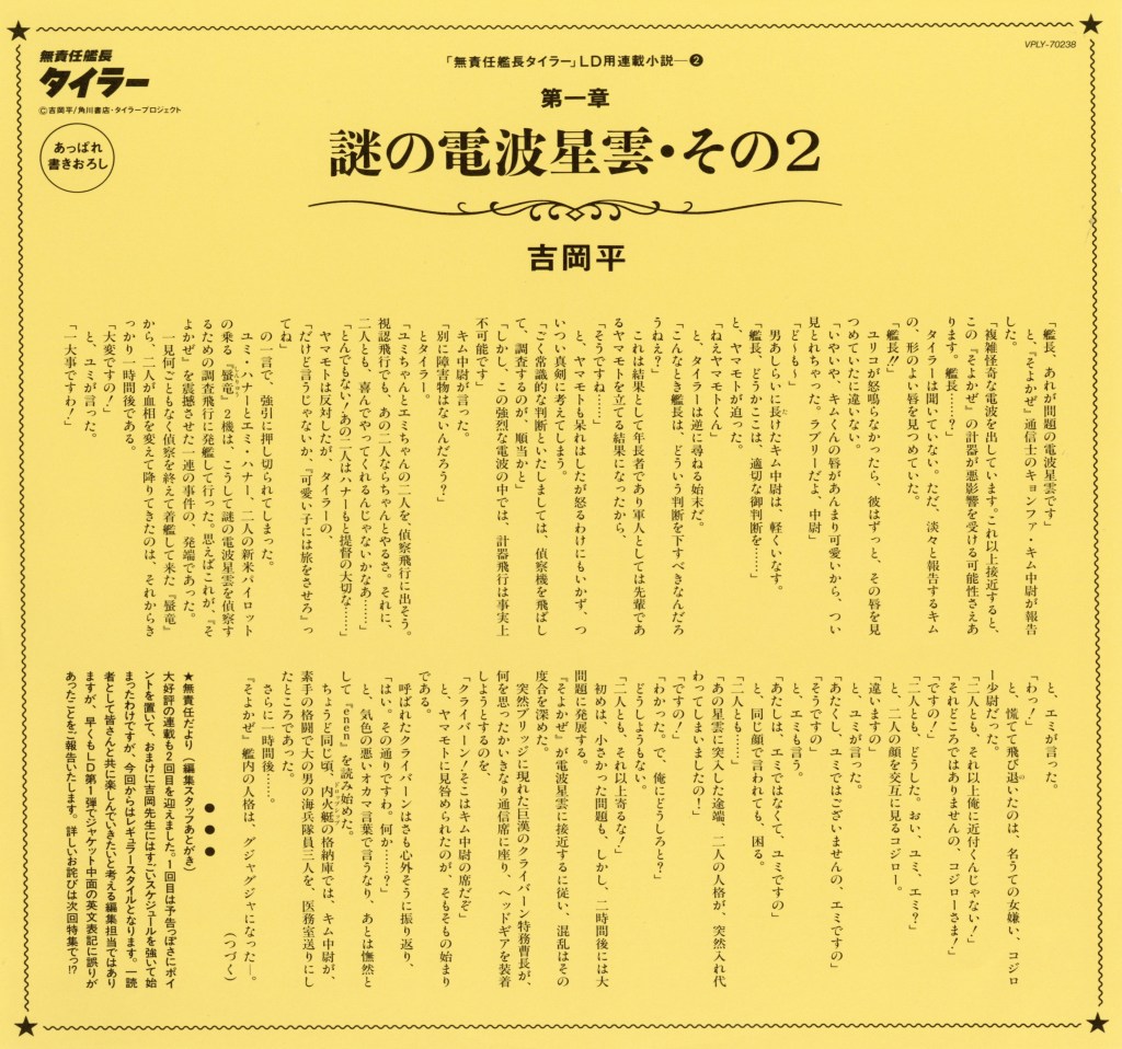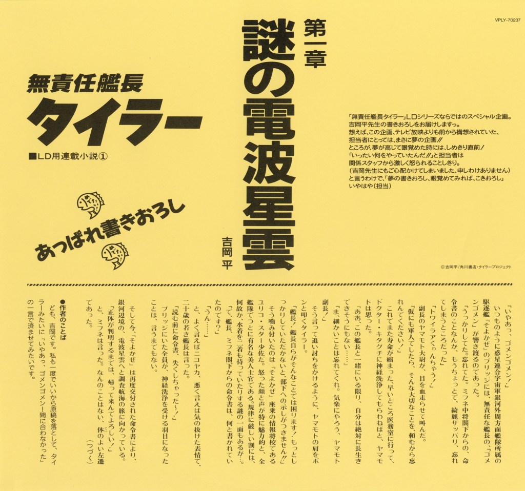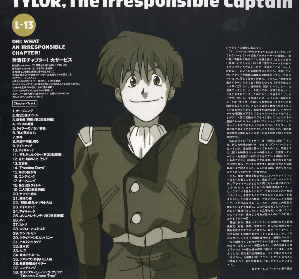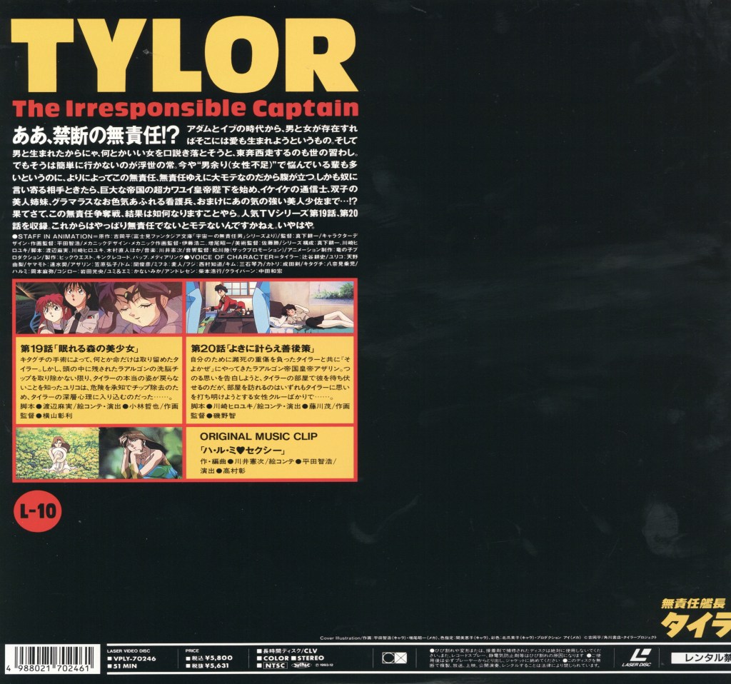 The anime series The Irresponsible Captain Tylor is a 1993 Japanese science fiction comedy that blends space opera, satire, and character-driven humor. The Irresponsible Captain Tylor