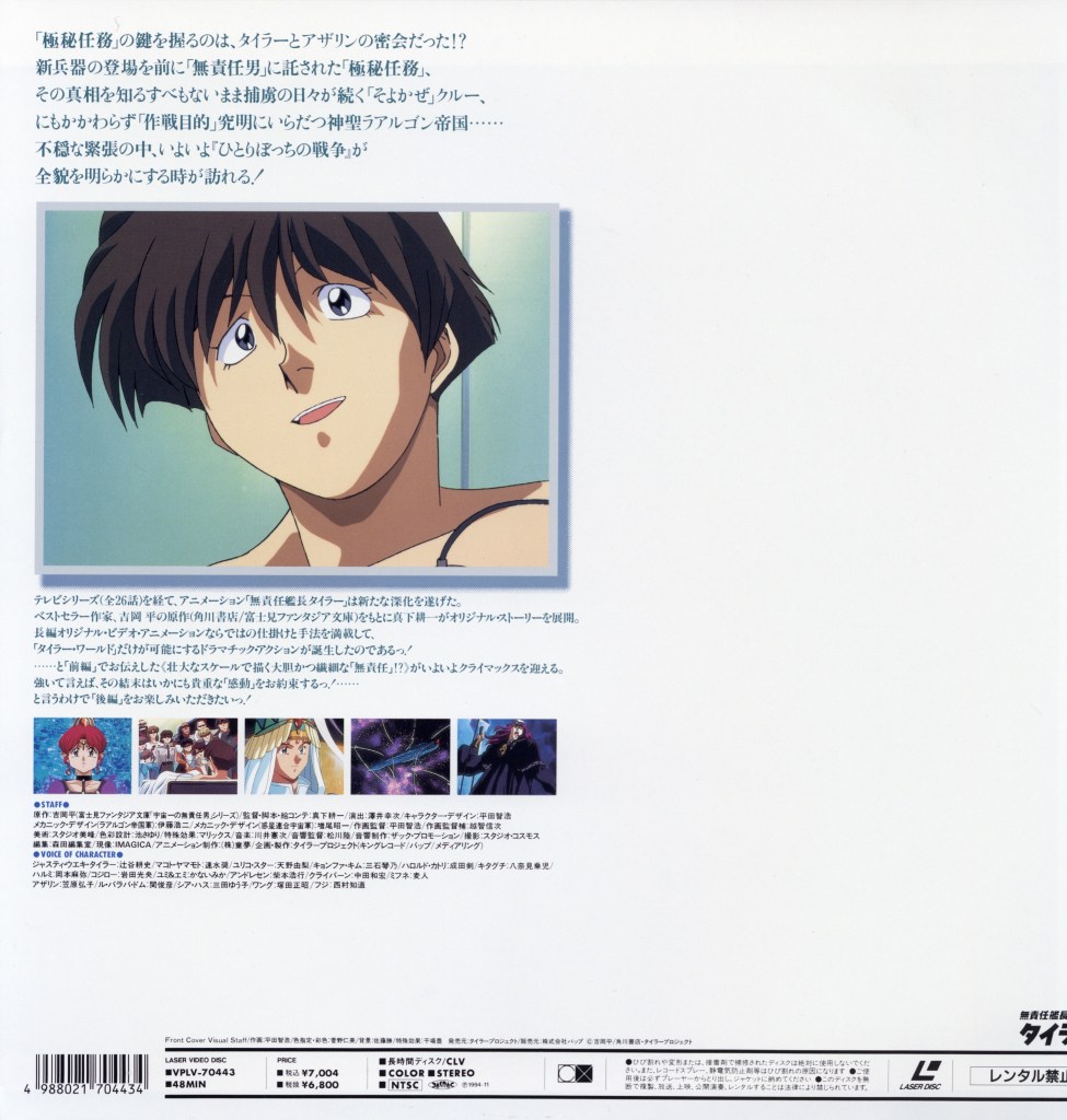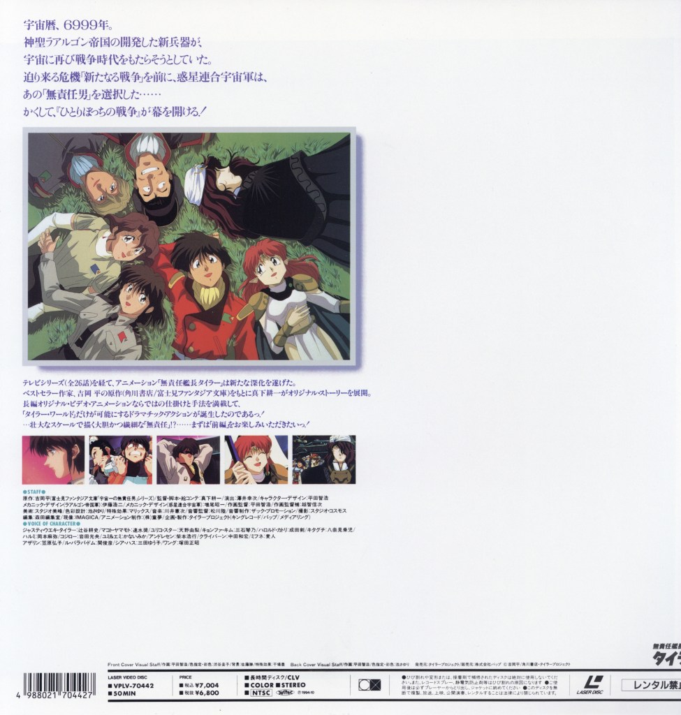 The Irresponsible Captain Tylor: A War of One’s Own is an original video animation (OVA) entry in the Irresponsible Captain Tylor franchise, expanding on the story with a more introspective and dramatic tone.