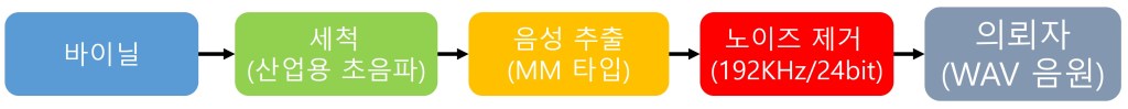 바이닐은 음질은 뛰어나고 소리가 편안하지만 틱노이즈가 많고 바이닐 전반에 험노이즈가 있다는 것이 단점입니다. 본 사에서는 산업용 초음파 세척기를 사용하여 바이닐을 세척하고 MM타입 카트리지를 사용하여 192KHz/24bit의 디지털 음원을 추출한 뒤, 틱노이즈 및 험노이즈를 최대한 제거하여 이어폰/헤드폰으로 들을 수 있을 정도의 디지털 음원으로 변환하여 드립니다.